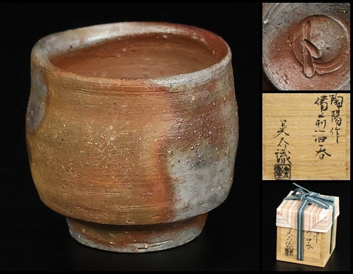 - 【 金重陶陽 】秀逸作 備前酒呑 人間国宝 金重晃介識箱 保証