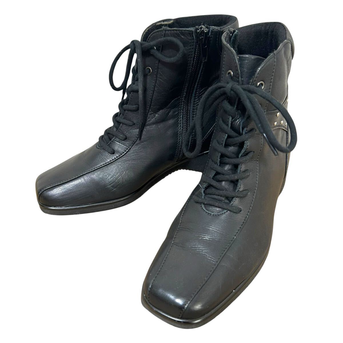 - ※BT1 NEWBELLCOLLECTIONG ショートブーツ レースアップ ブラック 21.5cm