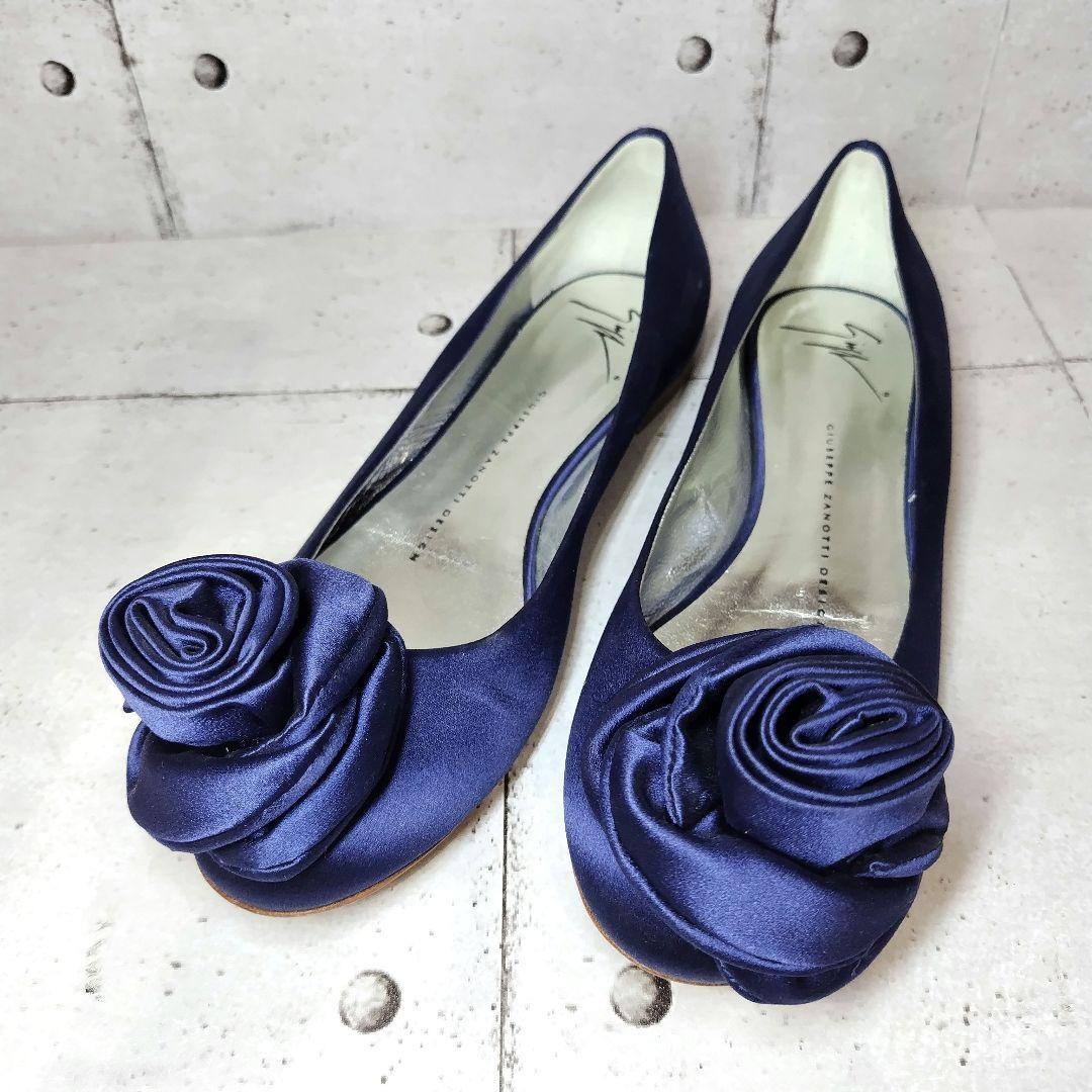 - ジュゼッペ・ザノッティ フラットシューズ フラワー 装飾 パンプス ネイビー 紺
