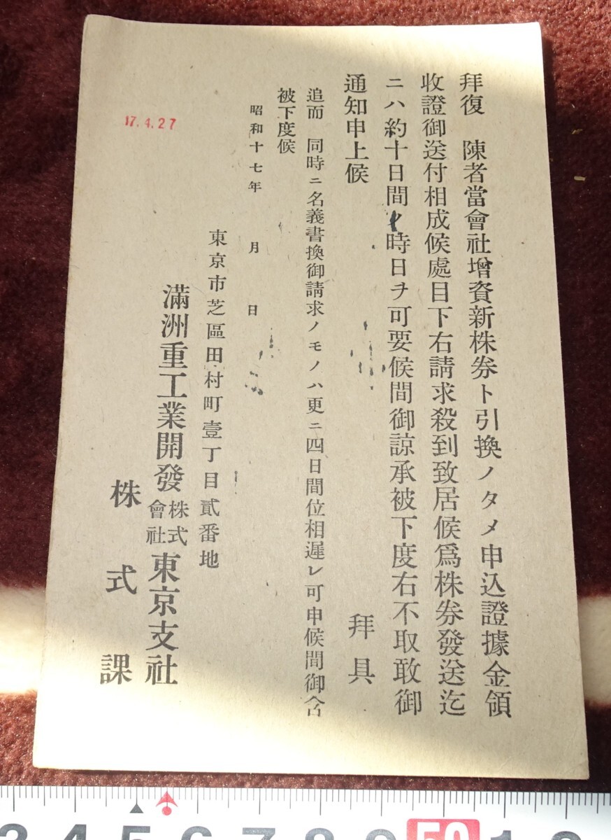 - rarebookkyoto m476 満洲 帝国 重工業開発株式会社 増資案内 実用 絵葉書 1943 年 新京 大連 中国