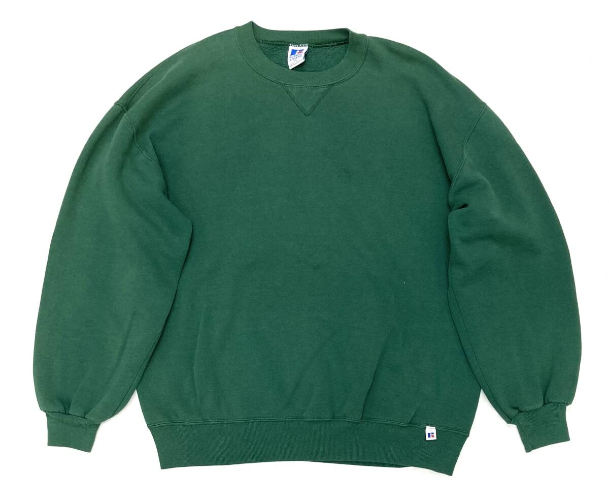 > 90s USA製 RUSSELL ATHLETIC 前V スウェット 緑 グリーン ブランク XL ラッセル トレーナー ガゼット