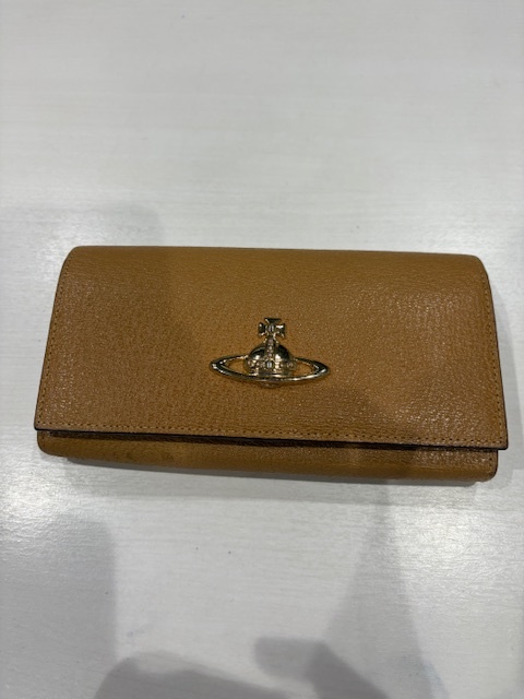 > ヴィヴィアンウエストウッド Vivienne Westwood レザー 二つ折り長財布 ブラウン