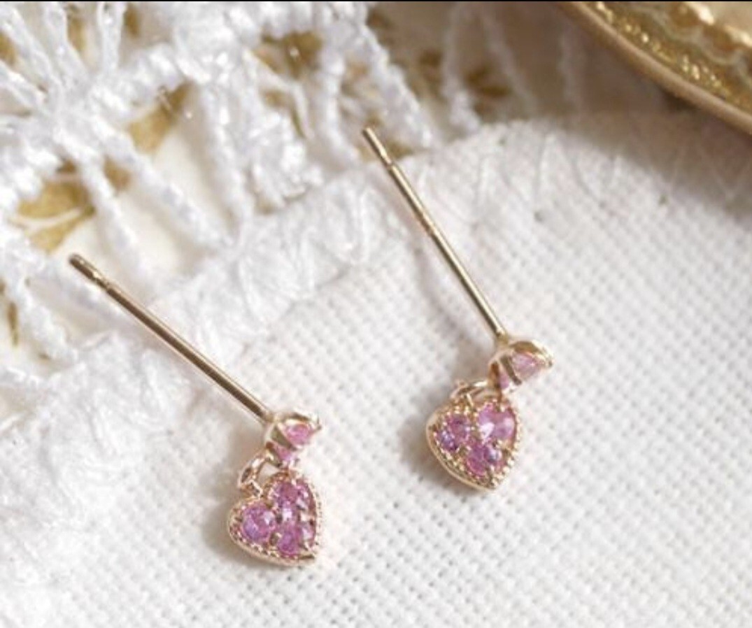 - ピンクサファイア ハートモチーフ K10 ピアス
