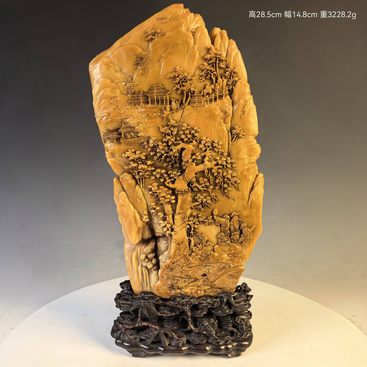 - 古石彫 寿山石 中国・清時代 【田黄石彫刻人物山水山子】 文房置物 古美術 古賞物 唐物 時代物 重3228.2g LT-2509148