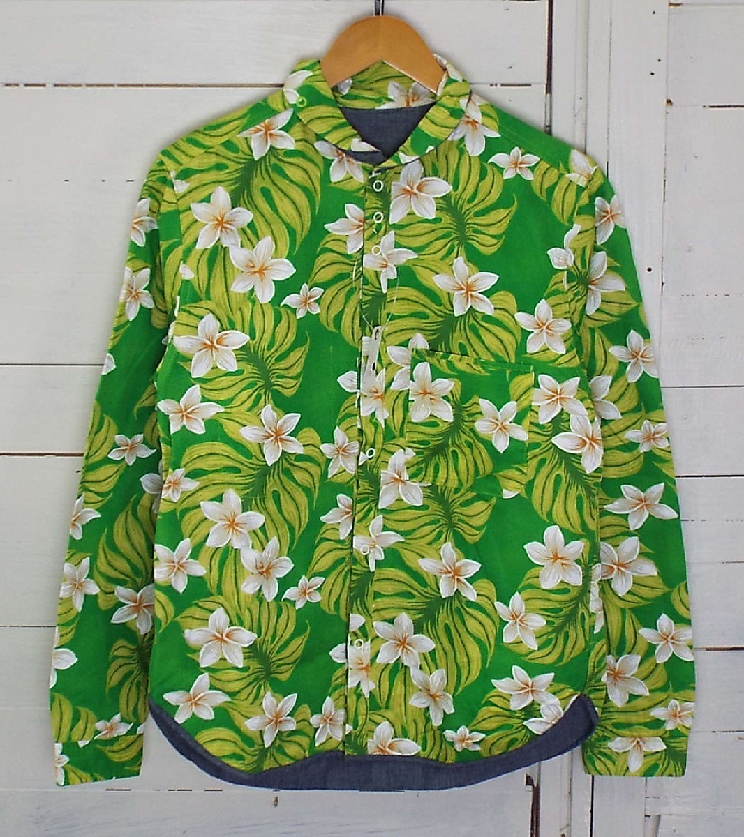 > T3010〇VOO(ヴォー)長袖 シャツ 花柄 総柄 グリーン系 サイズ1 SAMPLE/サンプル品 品質タグ無し