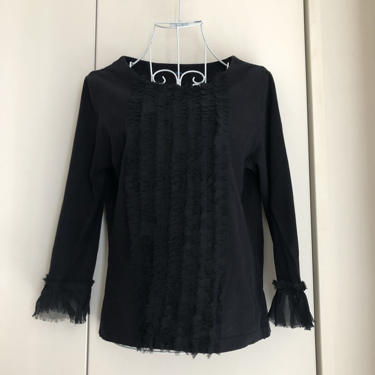 - トワレ Toilette 長袖シャツ カットソー フリル レース 黒 ロンT 日本製 ブラック