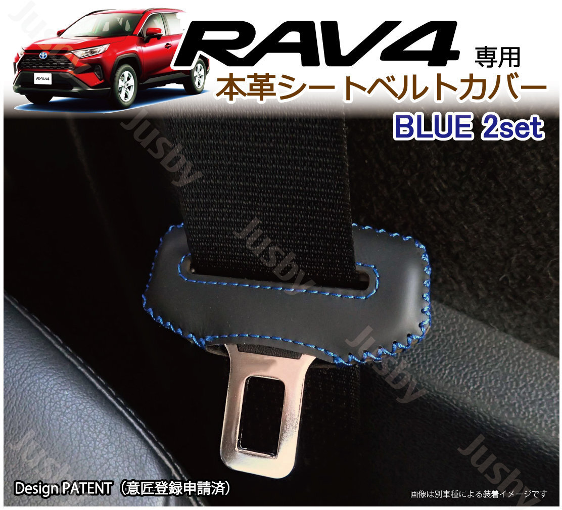 - (青ステッチ) トヨタ RAV4 (50系) 本皮 シートベルトカバー レザーカバー 新型 BLUE ドレスアップ 異音防止 傷防止 パーツ カスタム アクセ