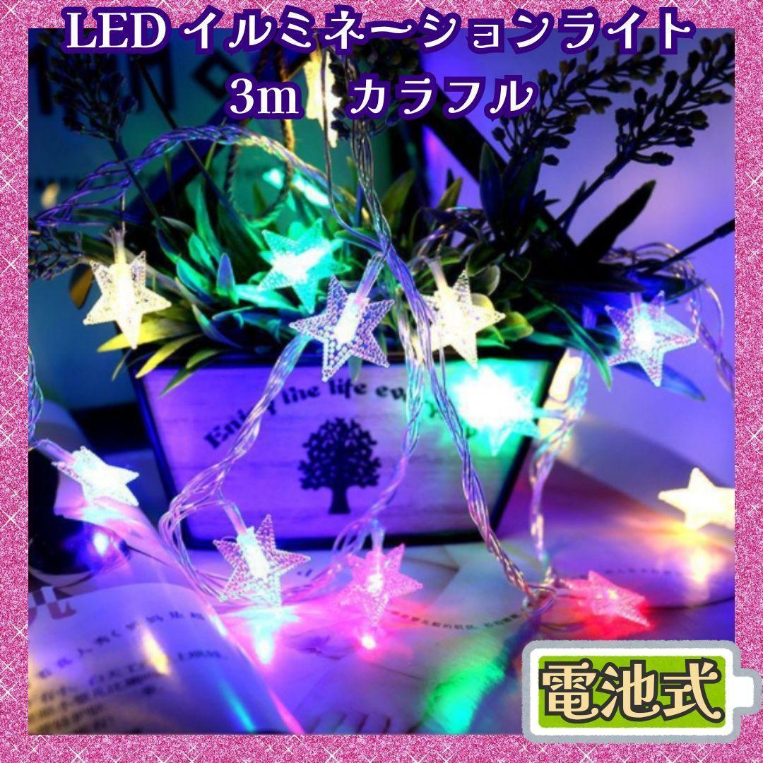 - イルミネーション LED ライト 3m 20LED 星型 電池 電飾 カラフル