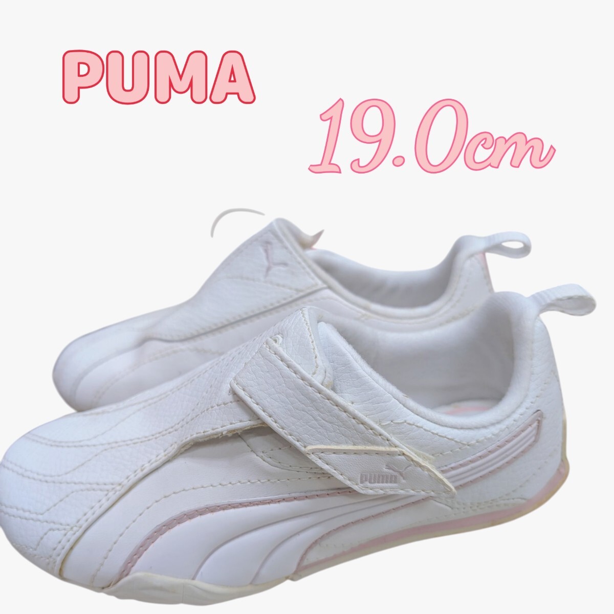 - プーマ キッズ スニーカー ホワイト ピンク 19cm 訳あり