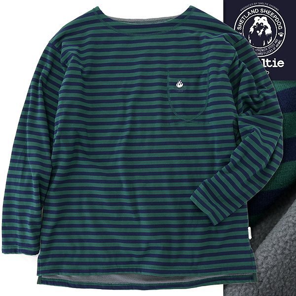 - 新品 シェルティークラブ 裏フリース ボーダー バスク シャツ M 緑 紺 【SH1444216_68_M】 秋冬 Sheltie Club 長袖 Tシャツ ロンT