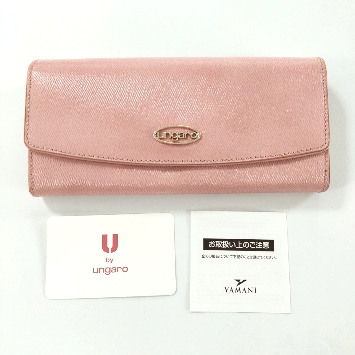 - b 未使用 ユーバイウンガロ 長財布 ピンク レザーウォレット かぶせ 収納力 ロングウォレット