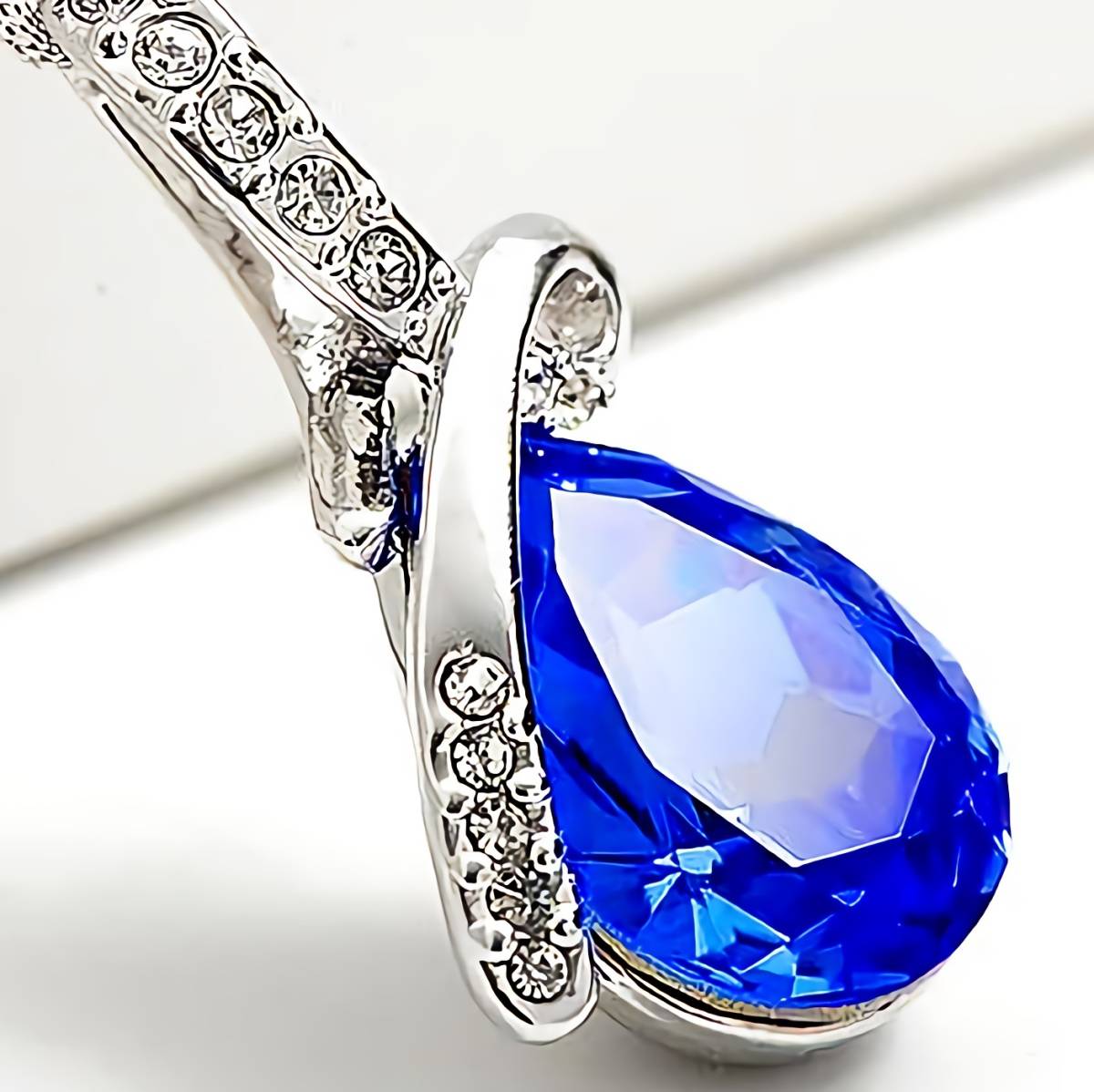 - 新品★送料無料★蒼玉サファイア雫 ダイヤモンド プラチナ仕上 925シルバーネックレス 誕生日プレゼント旅行秋祭冬連休ギフト国内発送