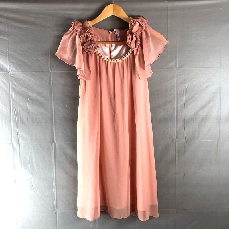 - アンドロジーン Andro Gyne ワンピース ノースリーブ サテン ショルダーパール パーティー ピンク くすみピンク 38サイズ 2025083100414