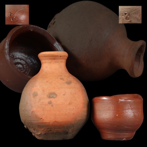 - 蔵出し品 備前焼 人間国宝 藤原啓 徳利・ぐい呑 酒器 珍品