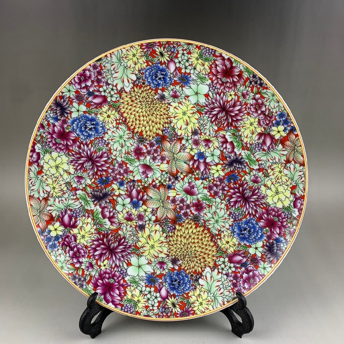 - 高品質! 送料無料! お皿 観賞皿 粉彩 花柄 スタンド付き 観賞 景徳鎮 装飾 賞物 中国美術 収蔵26cm fgcq004