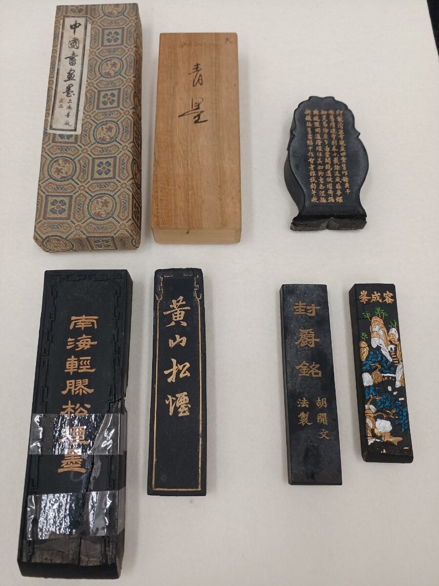 > ■H.F■ 南海軽膠松煙墨 黄山松煙 封爵銘 紫雲峰 中国墨 5丁セット上海墨廠出品 北京墨汁廠製 胡開文 唐墨 文房四宝 墨 固形墨 古墨 [一]