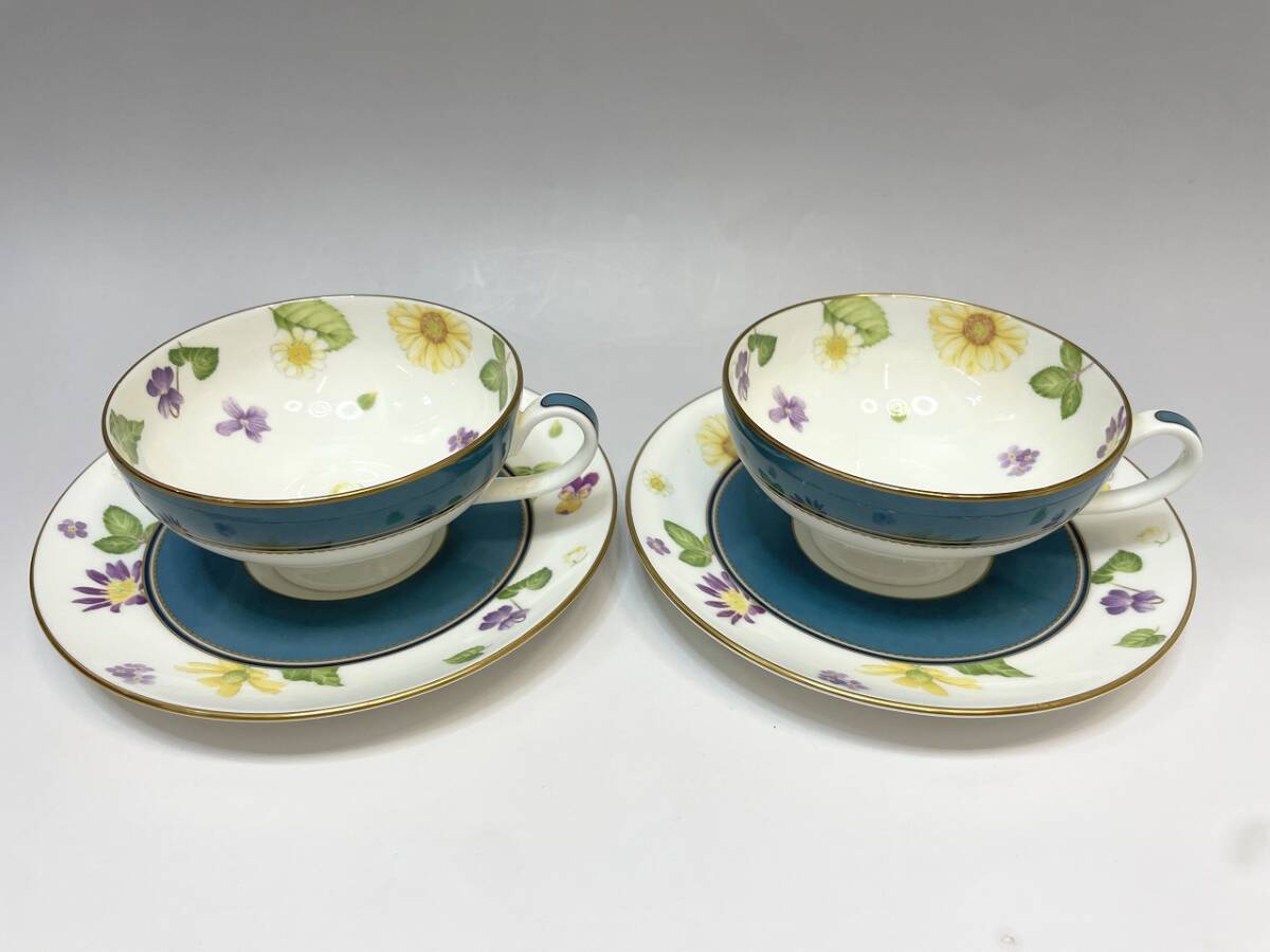 > 美品 ナルミ フローラル スミレ カップ&ソーサー 2客セット 金彩 陶器 ブランド洋食器 NARUMI F