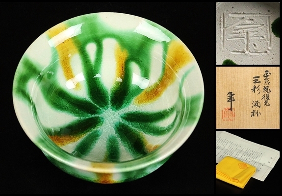 - 【 加藤卓男 】秀逸作 正倉院復元三彩酒杯 人間国宝 共箱 保証