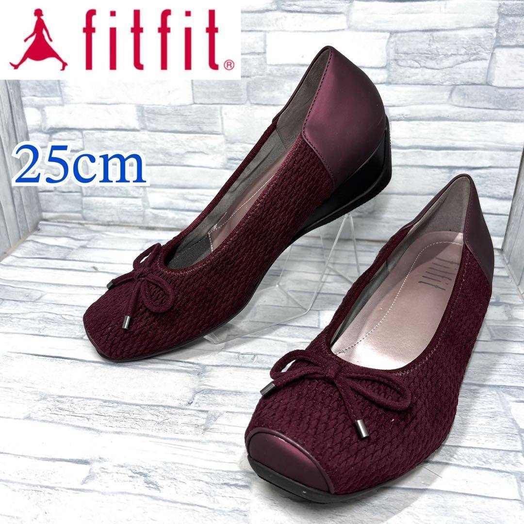 - ★美品★fitfit フィットフィット 撥水バレエパンプス ワインレッド 25cm