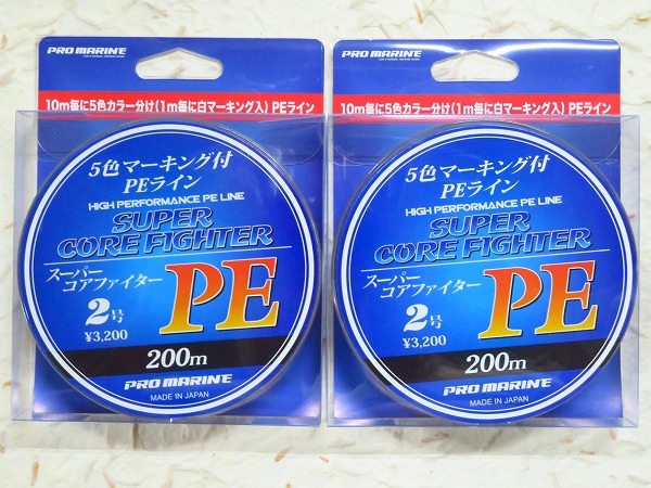 - 【送料無料】 日本製 スーパーコアファイター PE 2号 200m×2個セット 定価1個3,200円+税 PEライン