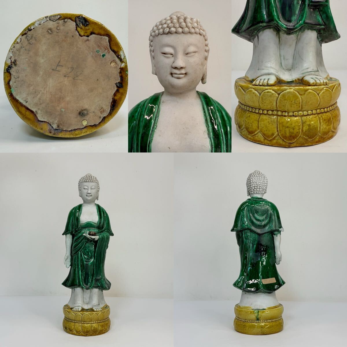 - TR-中国古美術 時代物 仏像 仏教美術 釈迦像 色絵 素三彩 立像 唐物 陶磁器 中国古玩 骨董品 傷あり