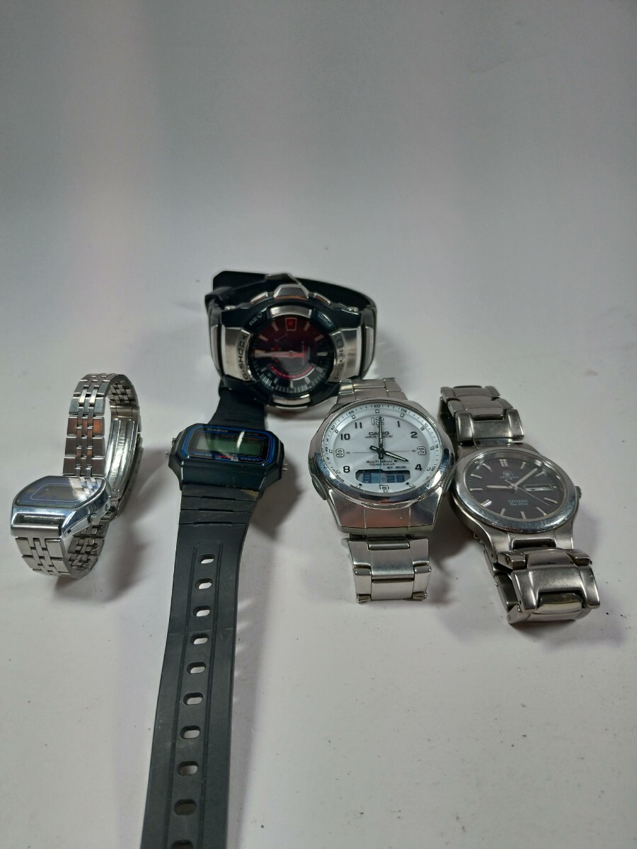 > vmpd7-91-1-38 CASIO CITIZEN G-SHOCK シルバー ラバー メッキ 腕時計 まとめ 動作未確認 現状渡し 中古ジャンク 合計5本