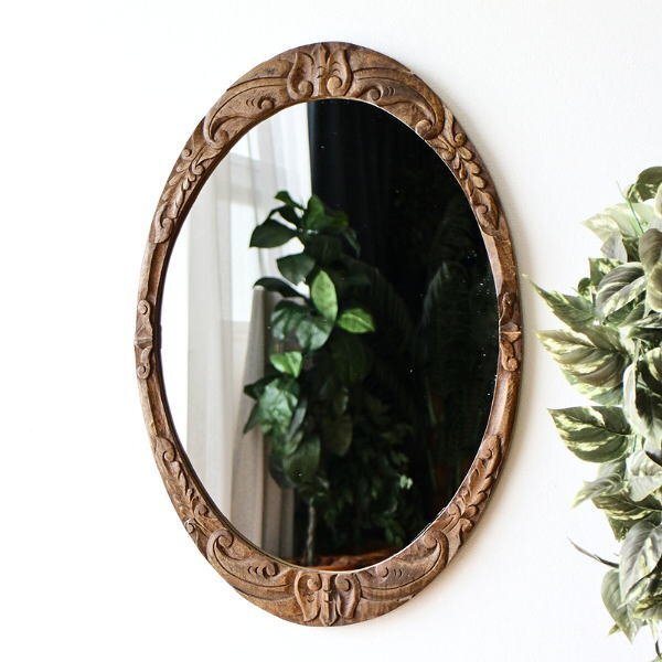 - 鏡 壁掛け 木製 ミラー 高さ70cm 楕円 彫刻 洗面 ウォールミラー 姿見 ウッドカービングミラー オーバル 送料無料(一部地域除く) ras2357