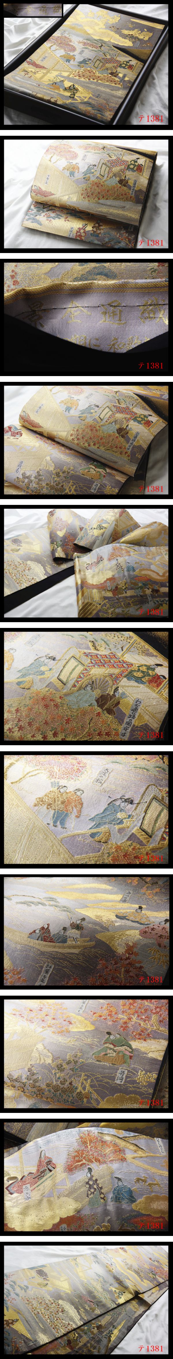 - 蔵【テ1381】西陣逸品 全通全景 伊勢物語 華やぎの品格 正絹純金糸全通高級美術袋帯 ◇検◇簪着物名古屋帯和装小物帯締め
