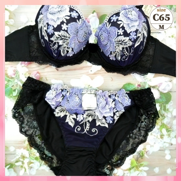 > Zc6501◎新品 ブラショーツセット【C65/M】下着 ランジェリー 丸胸 ラグジュアリーローズ 黒×紫