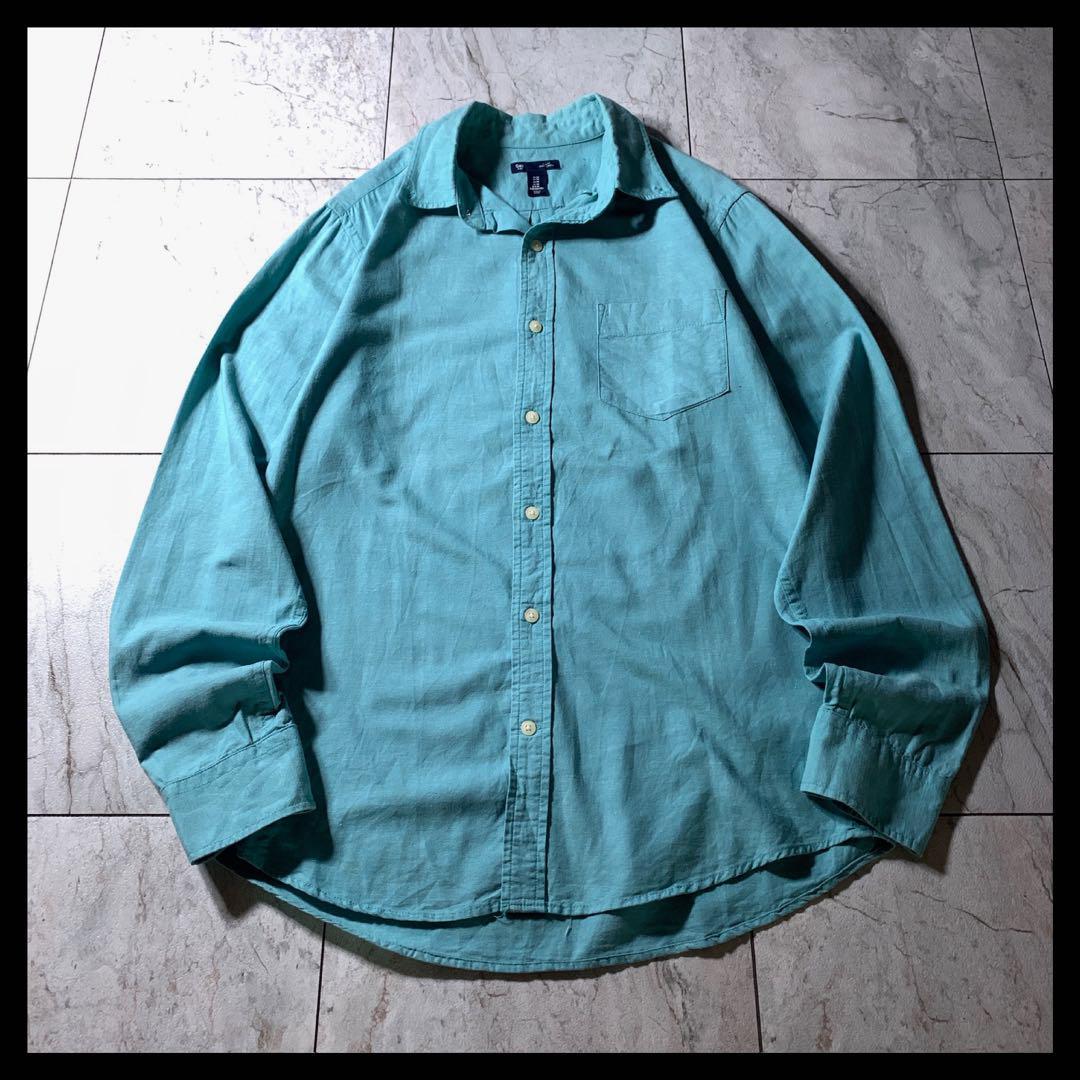 - OLD GAP リネン混 コットン BDシャツ ターコイズ エメラルド 無地