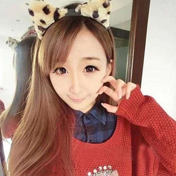 - カチューシャ フワフワ 猫耳 ライト豹柄