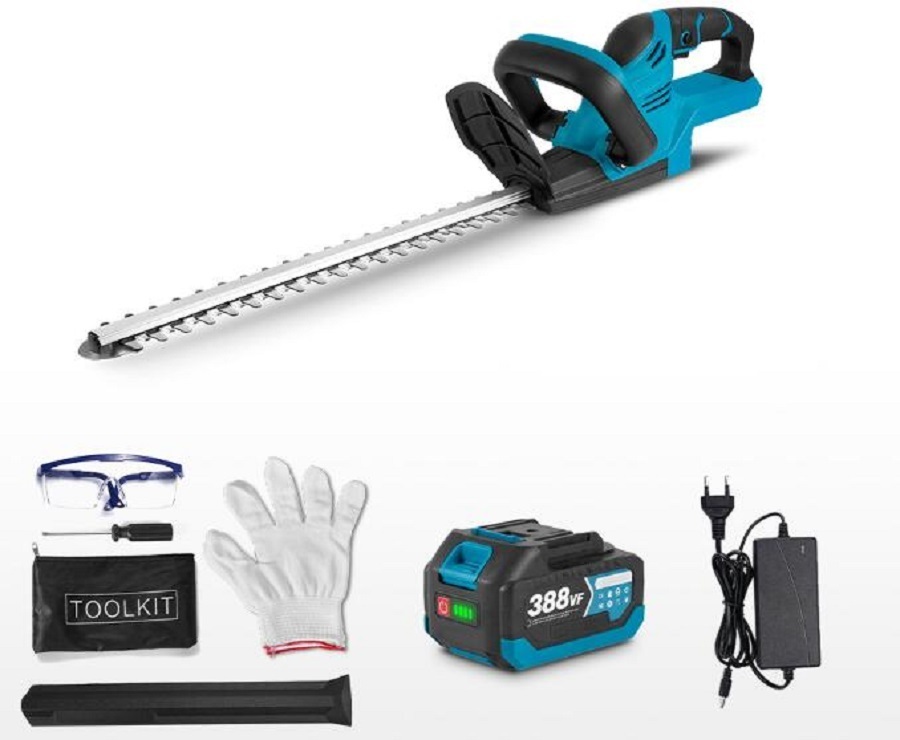 - 充電式ヘッジトリマー チェーンソー 刈込幅520mm 両刃駆動 芝刈り機 生垣 バリカン バッテリー1枚 園芸用 庭木バリカン 剪定機械