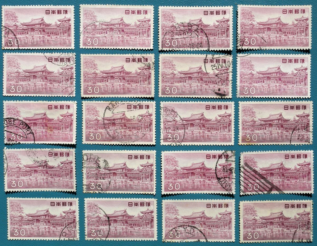 - 【戦後初期普通切手!!】(45) 1次円単位 30円平等院 使用済20枚まとめて 型価2.4千円