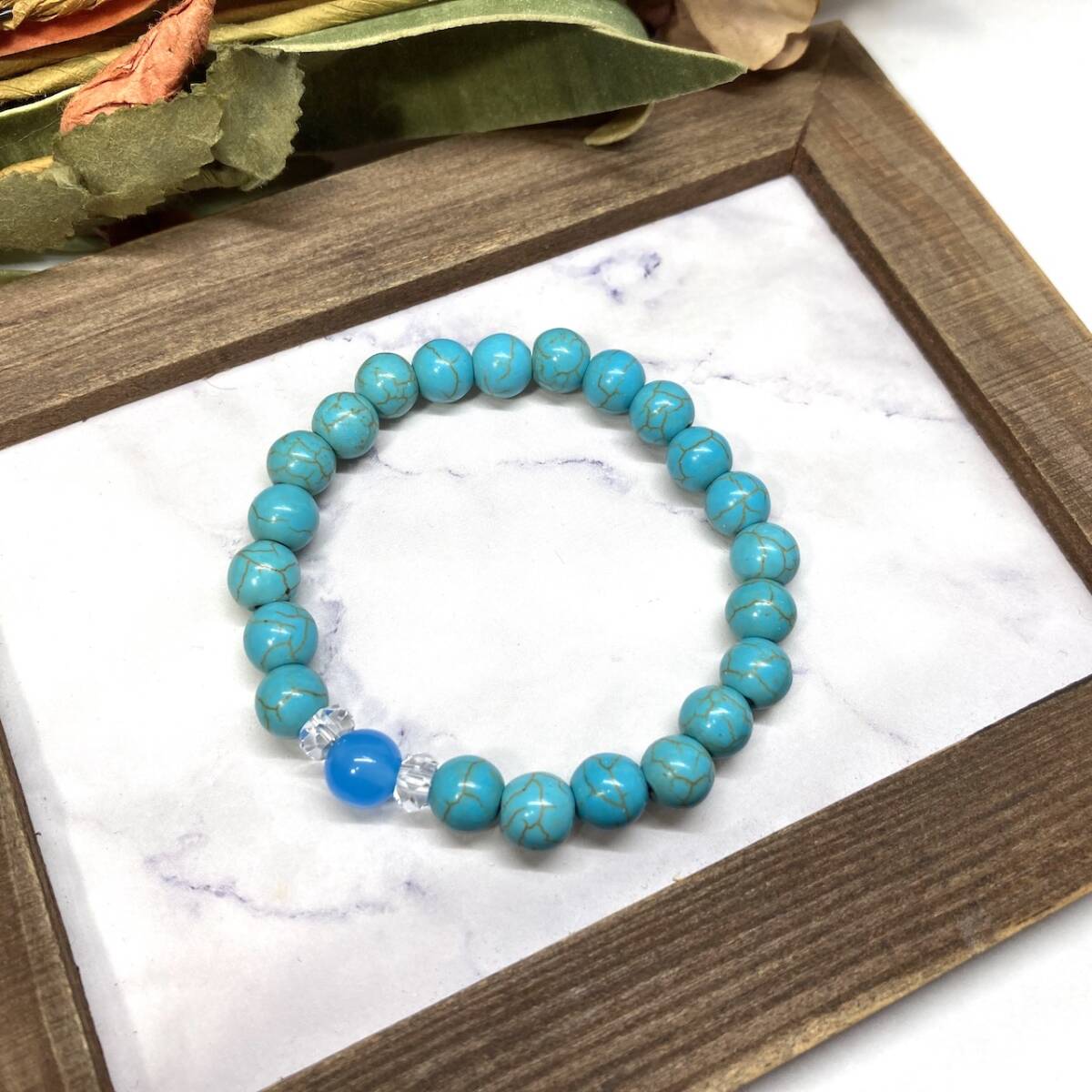 - 青瑪瑙&ターコイズ ブレスレット パワーストーン レディース 女性 金運 恋愛 開運 数珠ブレス お守り