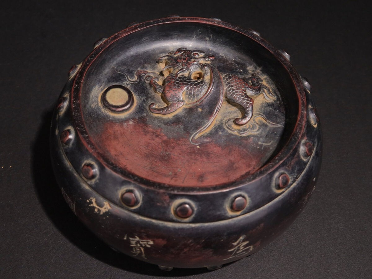 - 「古端石硯 瑞麟 鼓形文房端渓硯 張三甲銘 清時代」手彫り 文房四宝 書道具 中国古美術 旧蔵出