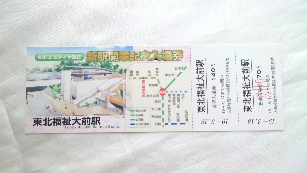 - ◇JR東日本◇東北福祉大前駅開業記念入場券◇平成19年