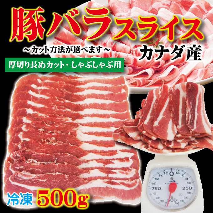 > 豚バラスライスカナダ産500g冷凍 厚切り長めカット・しゃぶしゃぶ用 カット方法が選べます