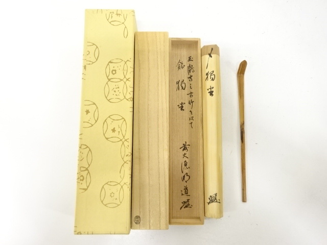 - 宗春造 竹 玉瀧寺之古竹 茶杓 (前大徳寺:戸上明道書付)(銘:独笙) (IBI4D-046)