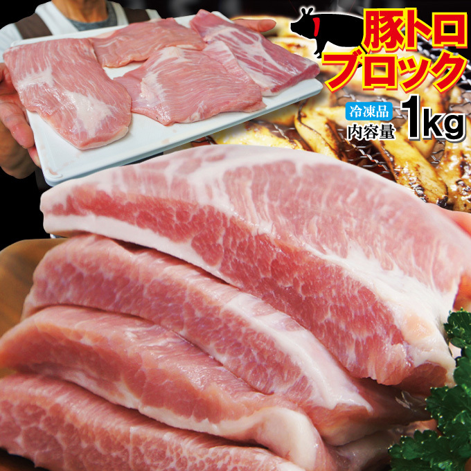 > 豚トロとろブロック1kg冷凍アメリカ・カナダ産【霜降り】【業務用】【カルビ】【焼肉用】