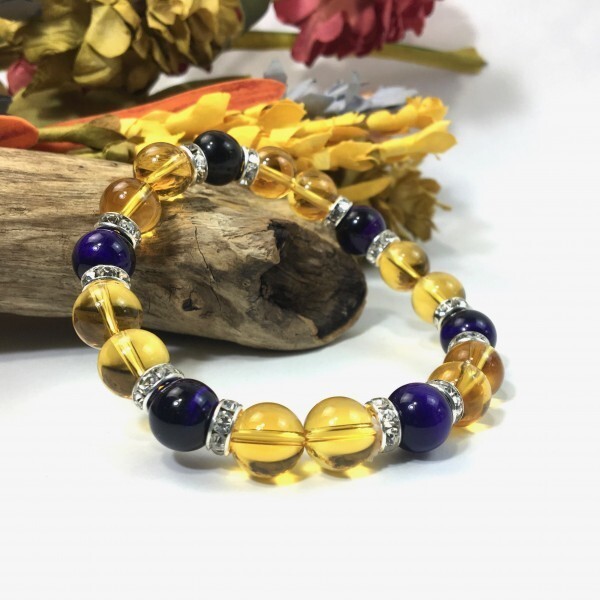 > シトリン×パープルタイガーアイ パワーストーン ブレスレット 天然石ブレス 10mm (シルバー) メンズ・レディース 繁栄 富 幸福
