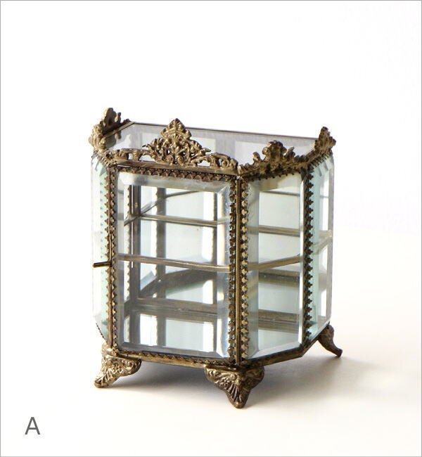 - ガラスケース 真鍮 アンティーク 扉付き レトロな真鍮とガラスのコレクションケース 【Aカラー】 送料無料(一部地域除く) vin3847a