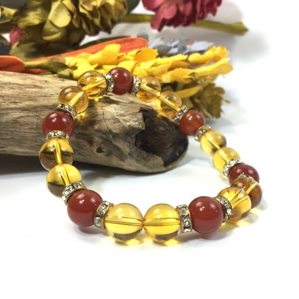 > シトリン×赤瑪瑙 パワーストーン ブレスレット 天然石ブレス 10mm (ゴールド) メンズ・レディース 繁栄 富 幸福