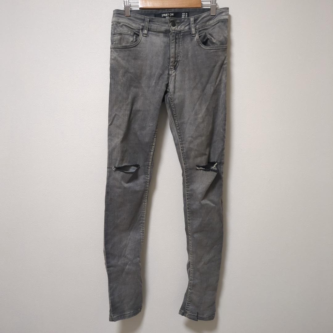 - SPRAY ON(30)ダメージスキニーデニムパンツ*ビンテージ*伸縮性*黒