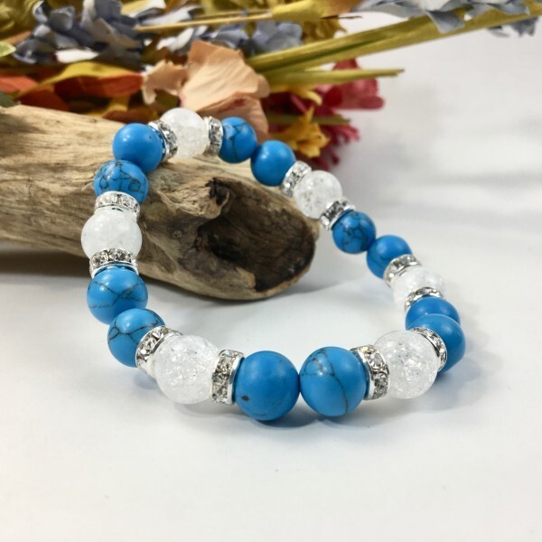 > パワーストーン ターコイズ×クラック水晶 ブレスレット (シルバー) 10mm メンズ・レディース 成功 繁栄 安全