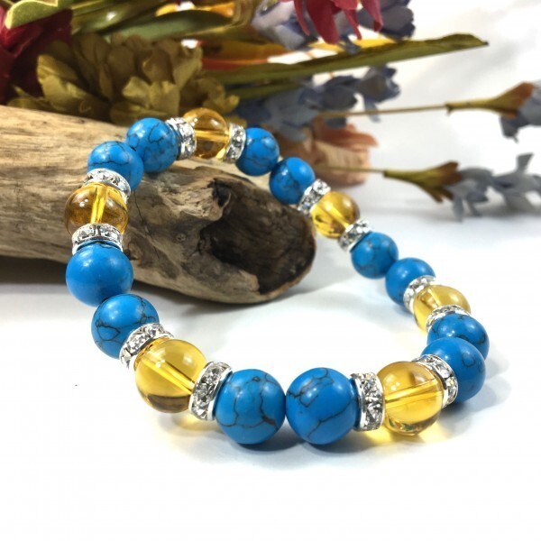 > パワーストーン ターコイズ×シトリン ブレスレット (シルバー) 10mm メンズ・レディース 成功 繁栄 安全