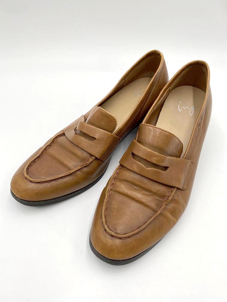 - ing イング IGTF96006 ヒールアップコイン ローファー シューズ size24.5/茶 ■■