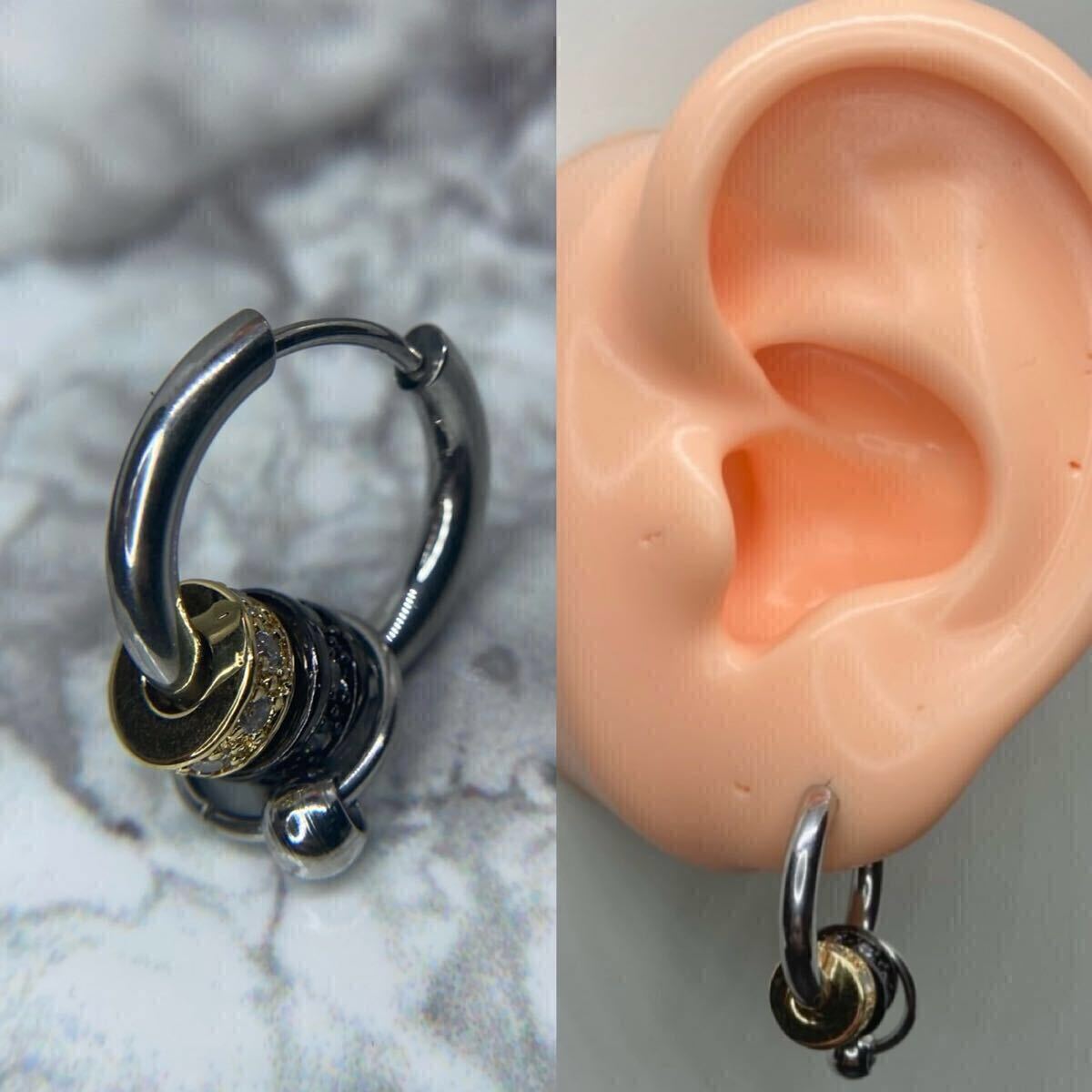 - 【新品】フープ ピアス 18g トリプル フープ ゴールド シルバー ブラック アクセサリー ワン ジルコニアダイア 片耳