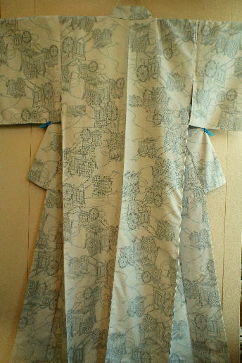 - 掘り出しました!15000円【紬】御所車文袷小紋 お稽古着【新品】