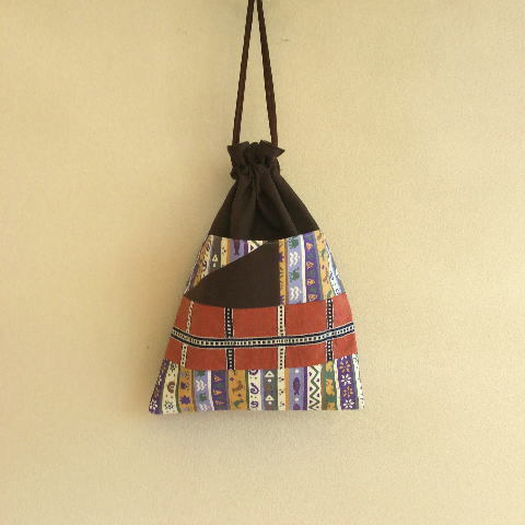 - 【入学、入園!】790円パッチワークのポケット付きバッグインバッグ巾着袋 【手作り小物】
