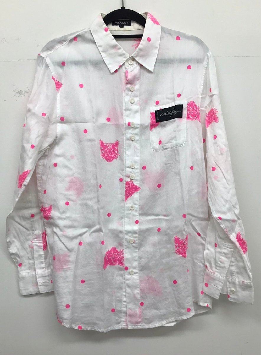 - 1円~【古着】MILKBOY ミルクボーイ キャットプリント 長袖 シャツ サイズM ホワイト トップス